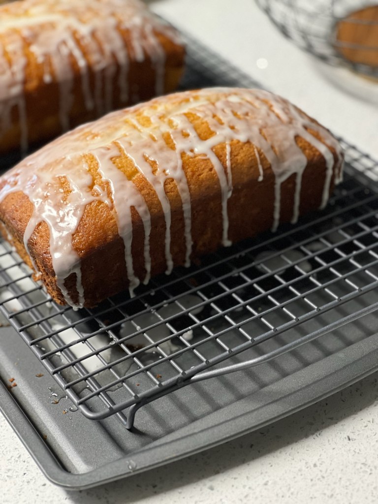 Whisk together the confectioners’ sugar and lemon juice until smooth. Drizzle over the cooled cakes, letting it run naturally down the sides.