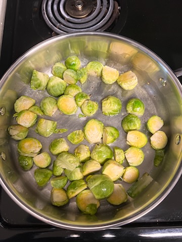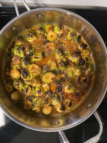 - Pour the prepared glaze over the sautéed sprouts, tossing gently to coat.