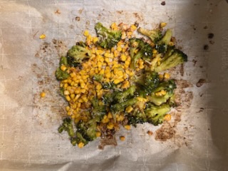 - Spread the broccoli florets and corn (either fresh or frozen) on a baking sheet. Season with salt and pepper to taste.